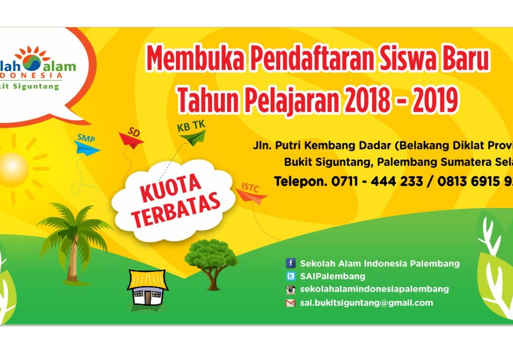 Sekolah Alam Indonesia Palembang membuka penerimaan siswa baru untuk tingkat Kelompok Bermain (KB) atauPlaygroup tahun ajaran 2018-2019. Program Kelompok Bermain […]